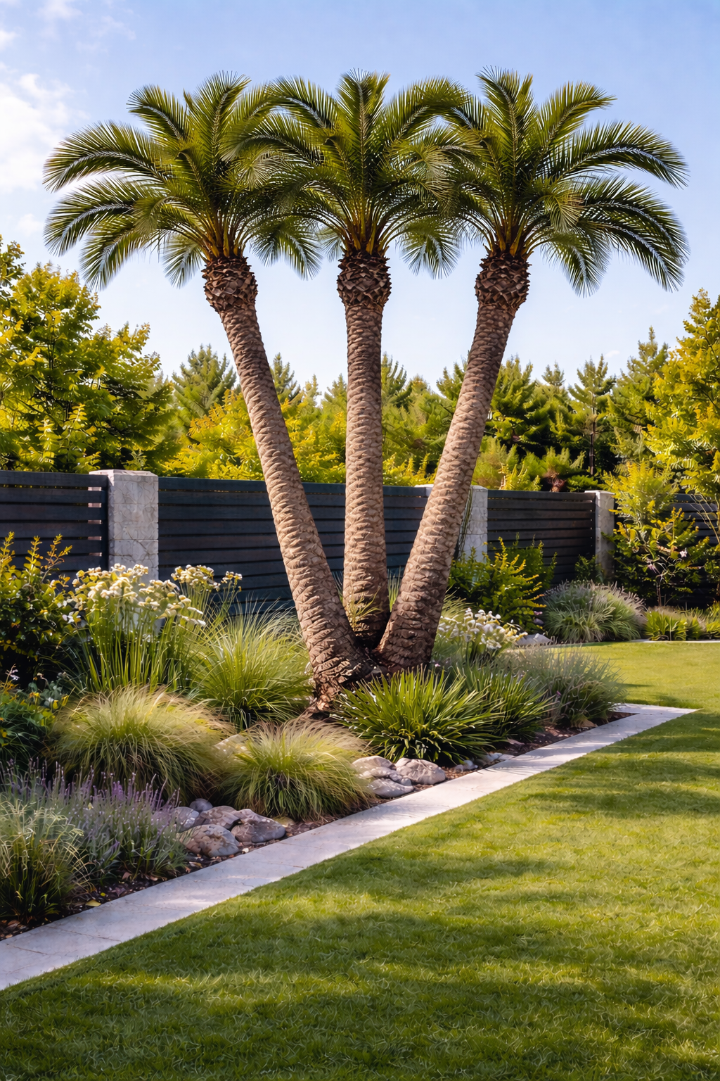 Ob als einzelner Blickfang, als Zwilling oder als Drilling – die Hanfpalme schafft eine besondere Atmosphäre und bringt ein Stück Urlaubsgefühl direkt in den eigenen Garten.
